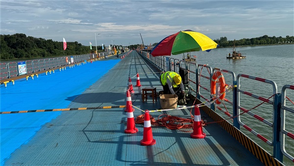 ▲天子山大桥2#、3#、4#作业平台物探勘察项目进行物探勘察工作。(张琦、吕海斌摄)