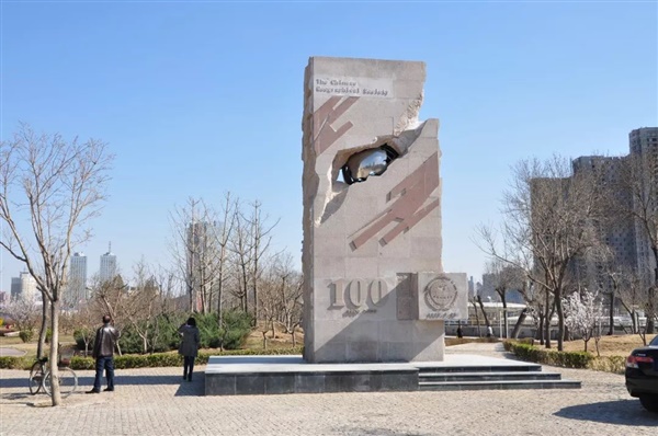“中国地学会在津成立百年纪念碑”:中国地学会是中国最早成立的学术团体之一,1909年9月28日成立于天津,它的成立推动了中国近代地球科学的发展,在中国近代科技史上具有里程碑式的重要意义。为了纪念中国地学会成立100周年,在中国地学会的发祥地天津建立一座纪念碑。纪念碑于2011年建成,被誉为中国纪念学术团体的“第一碑”。