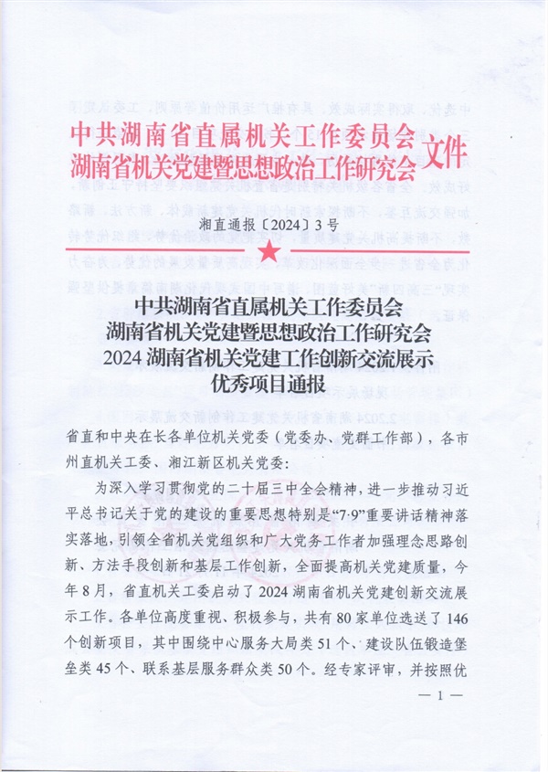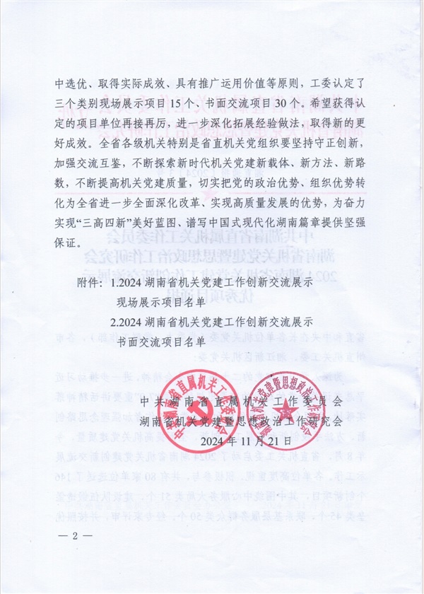 喜讯!物化所党建项目获评湖南省机关党建工作创新交流展示优秀项目