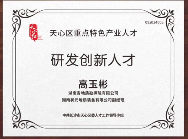 高玉彬作为省物化所状元地质装备有限公司设备研发部门主要负责人、探矿工程高级工程师,长期奋战在生产、科研一线。他专注于模块化钻机与热压钻头的技术改进、产品研发和工艺升级等领域,在相关研究方向上取得了突破性进展。他积极参与的钻机和钻头研发项目,在2017至2022年期间,成功获得了四项专利。