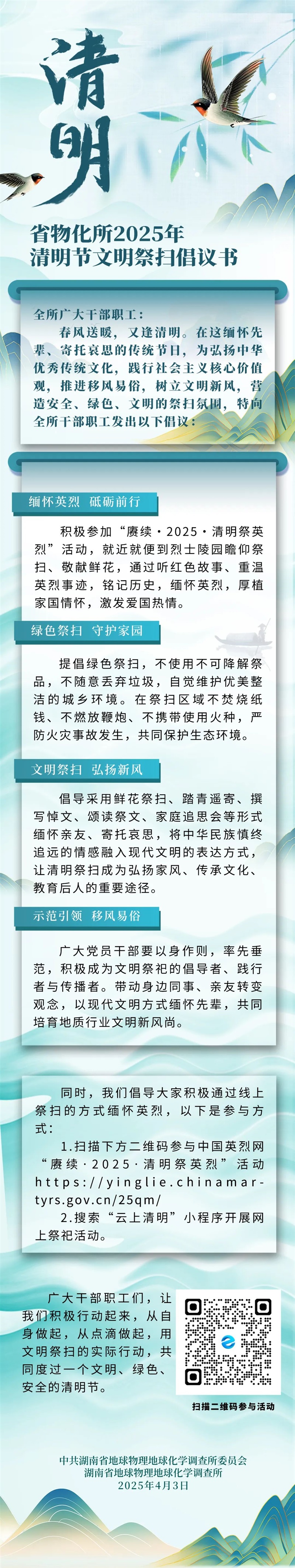 4月3日,省物化所发布2025年《清明节文明祭扫倡议书》,以下为倡议书全文。