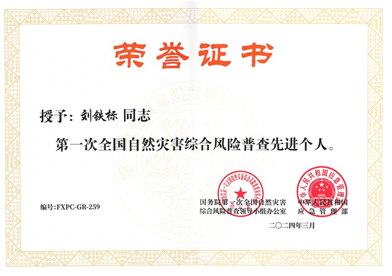 由他牵头建设的省级自然灾害风险基础数据库,实现了全省灾害风险数据的统一管理和智能应用,为构建科学高效的灾害防治体系提供了坚实的数据支撑和技术保障,显著提升了我省自然灾害防治能力现代化水平。凭借出色的工作表现,他荣获“第一次全国自然灾害综合风险普查先进个人”称号。