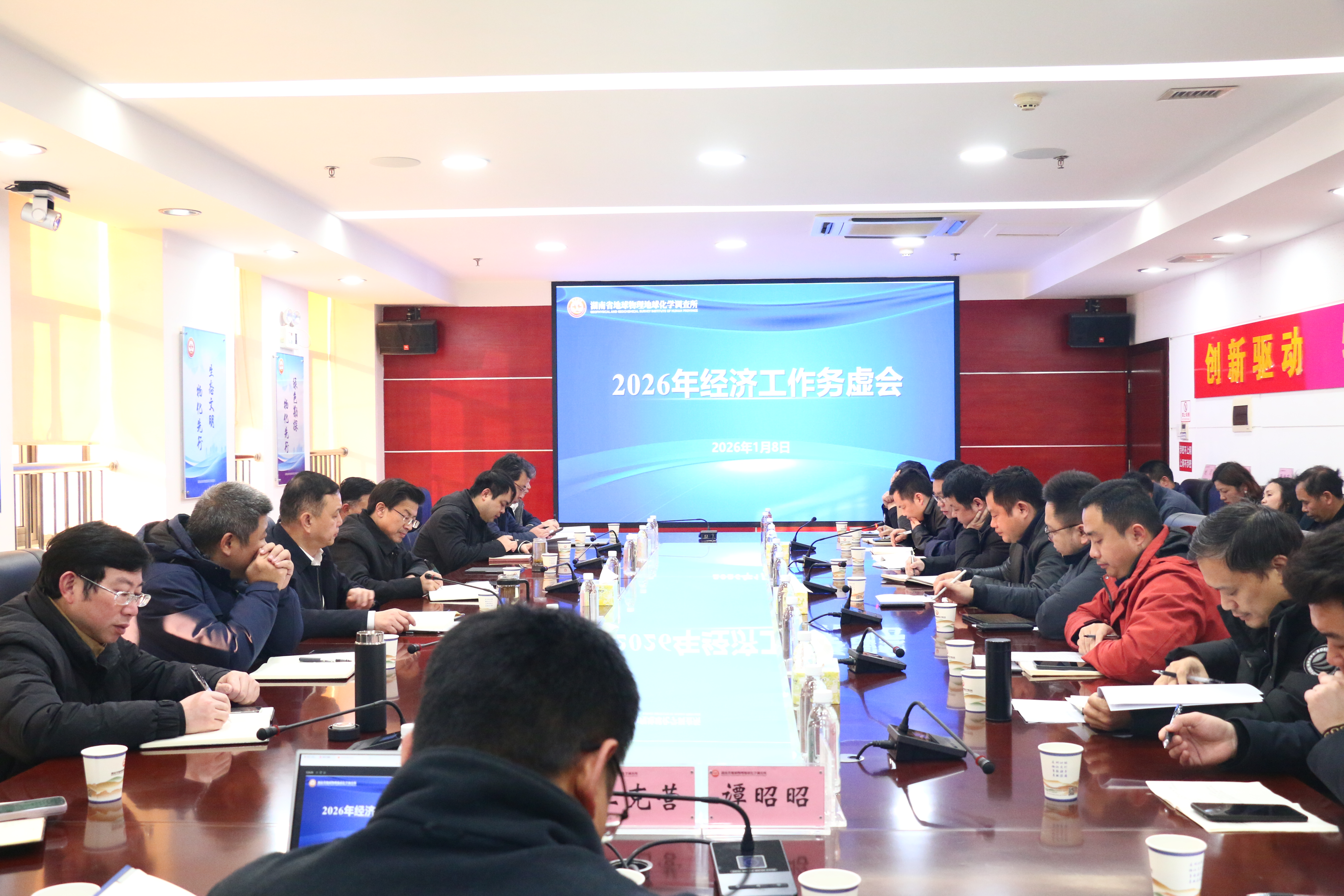 省地质院物化所组织召开2026年经济工作务虚会。所长廖凤初,党委书记雷建斌讲话,在家所领导,各专业中心、科创平台及企业负责人、机关部室负责人参加会议。
