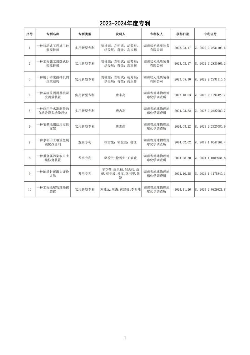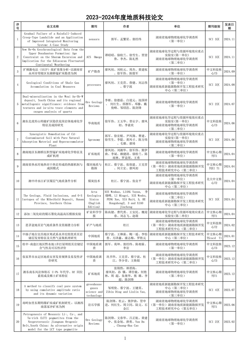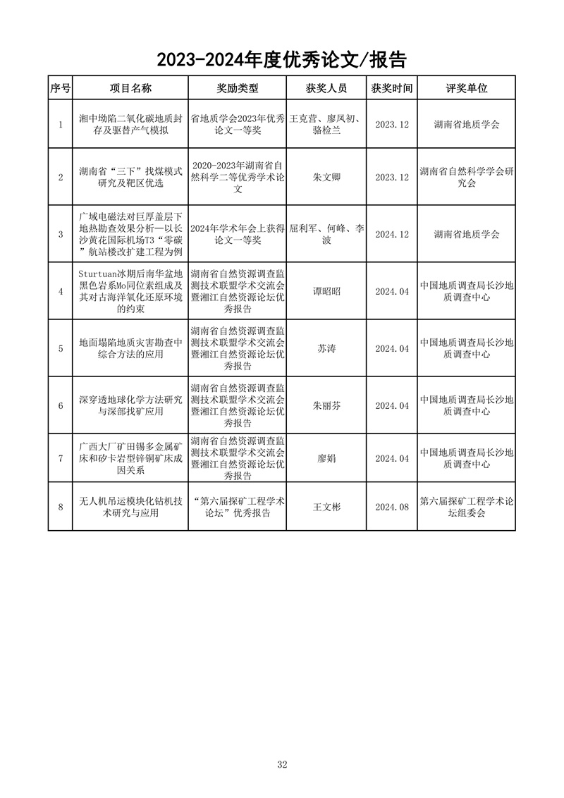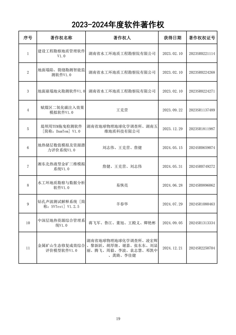 湖南省地球物理地球化学调查所取得多项科技成果,如下: