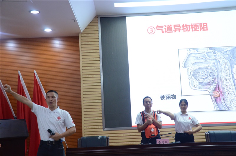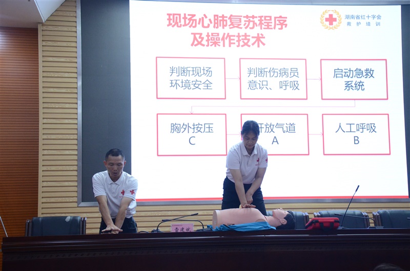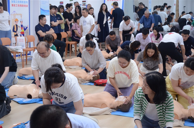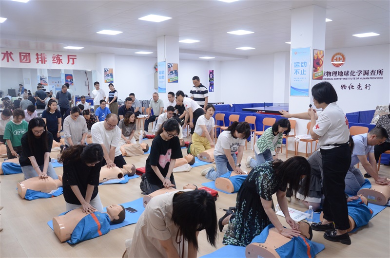 启动仪式结束后,随即开展了工伤预防和应急知识救护培训,来自湖南省红十字会的专业讲师团队为职工详细讲解急救知识,并设置现场模拟场景,指导职工亲身实践心肺复苏、AED操作、气道异物梗阻等急救技能,切实增强了职工应对突发安全事故的应急处理能力。参培人员在讲师的操作示范指导下,认真开展了专业实操训练,58名同志参加了理论考试与实践考核,有效提升了干部职工的应急救护知识储备与实践能力。