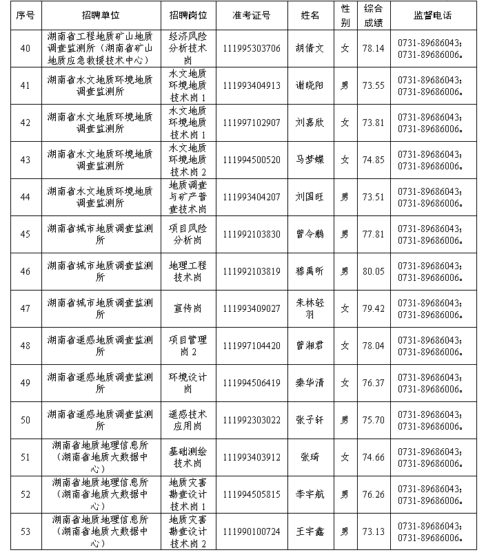 0731-89686043(湖南省地质院组织人事部)