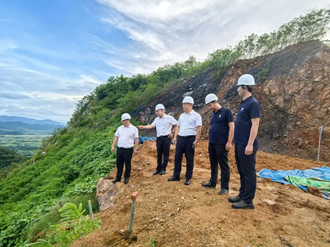 蒋安元一行详细了解项目进程,仔细检查项目安全生产相关记录,并深入施工现场检查施工设备、用电安全和劳保用品佩戴等情况,就施工过程中的危岩清理、挂网喷播、坡面截(排)水沟施工等关键环节安全管理工作向现场管理人员、施工人员仔细叮嘱,并强调: