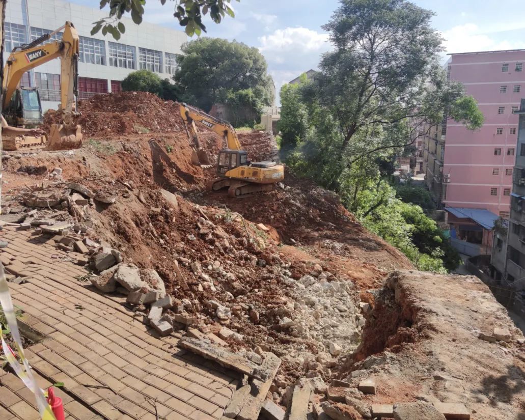 此前,因6月下旬强降雨影响,6月30日至7月2日,校区北西侧地坪开裂,直至滑坡变形加剧,坡上和滑坡前缘挡墙倒塌,237名群众连夜紧急撤离避险。作为娄底市地灾技术支撑牵头单位,资源所水环中心临危受命,第一时间赶赴现场开展应急调查工作,并提出应急处置方案。该项目旨在通过工程治理,消除滑坡下滑的安全隐患,确保滑坡体的整体稳定性,确保学校师生和周围住户的生命财产安全,并恢复灾体及周边生态环境。